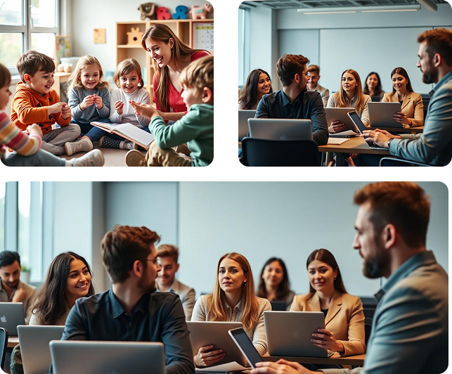Ofrecemos clases para todas las edades: desde infantil (a partir de 5 años), primaria, secundaria y bachillerato hasta adultos. Adaptamos los grupos por nivel y edad para garantizar un aprendizaje efectivo.